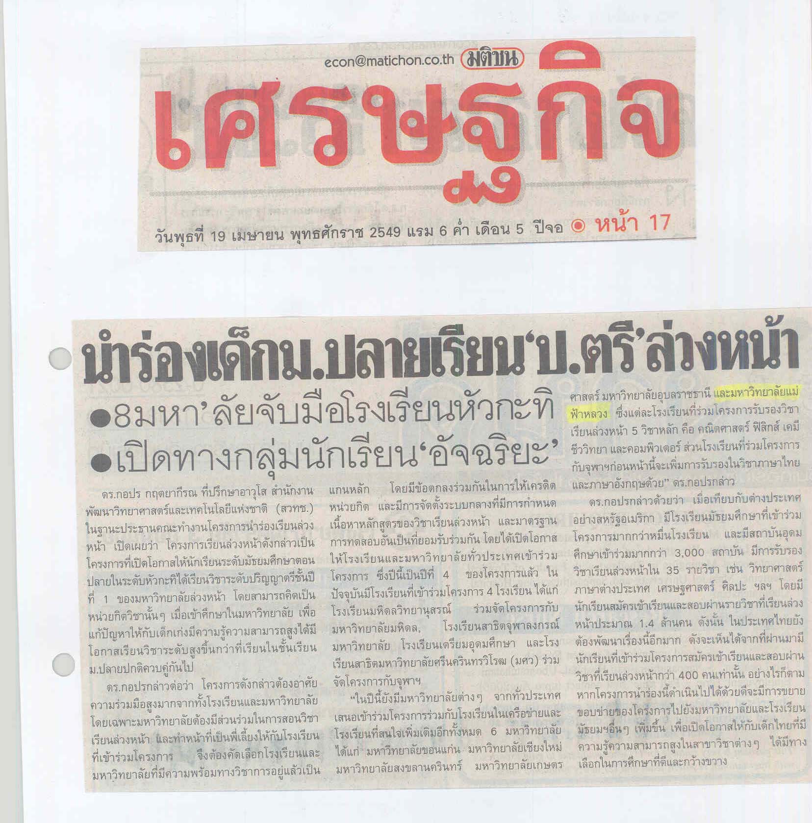 มติชน, วันที่ 19 เมษายน 2549 น. 17