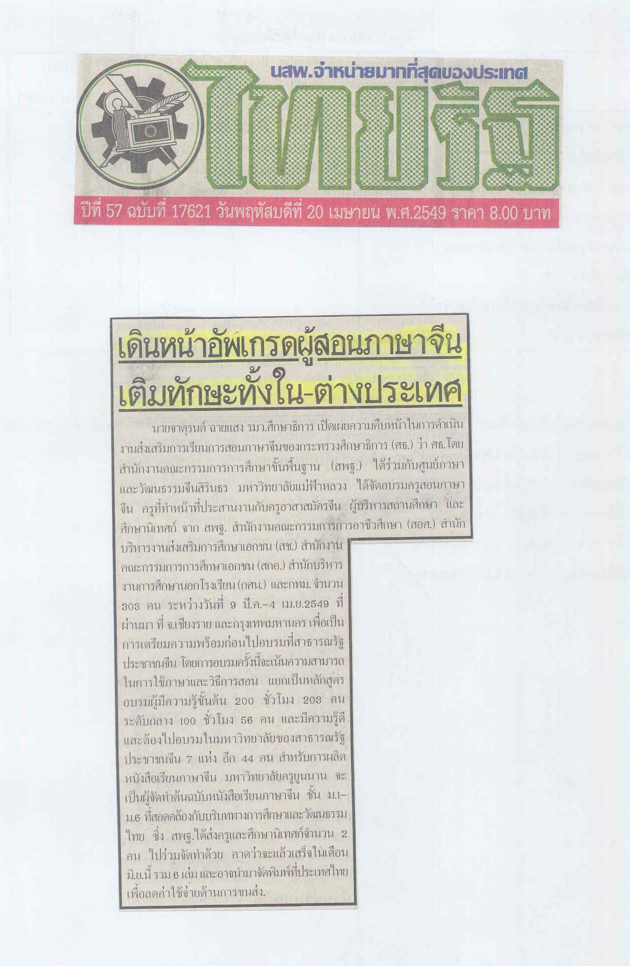 ไทยรัฐ, วันที่ 20 เมษายน 2549