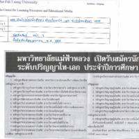 มหาวิทยาลัยแม่ฟ้าหลวงเปิดรับสมัครนักศึกษา ระดับปริญญาโท - เอก ประจำปีการศึกษา 2555