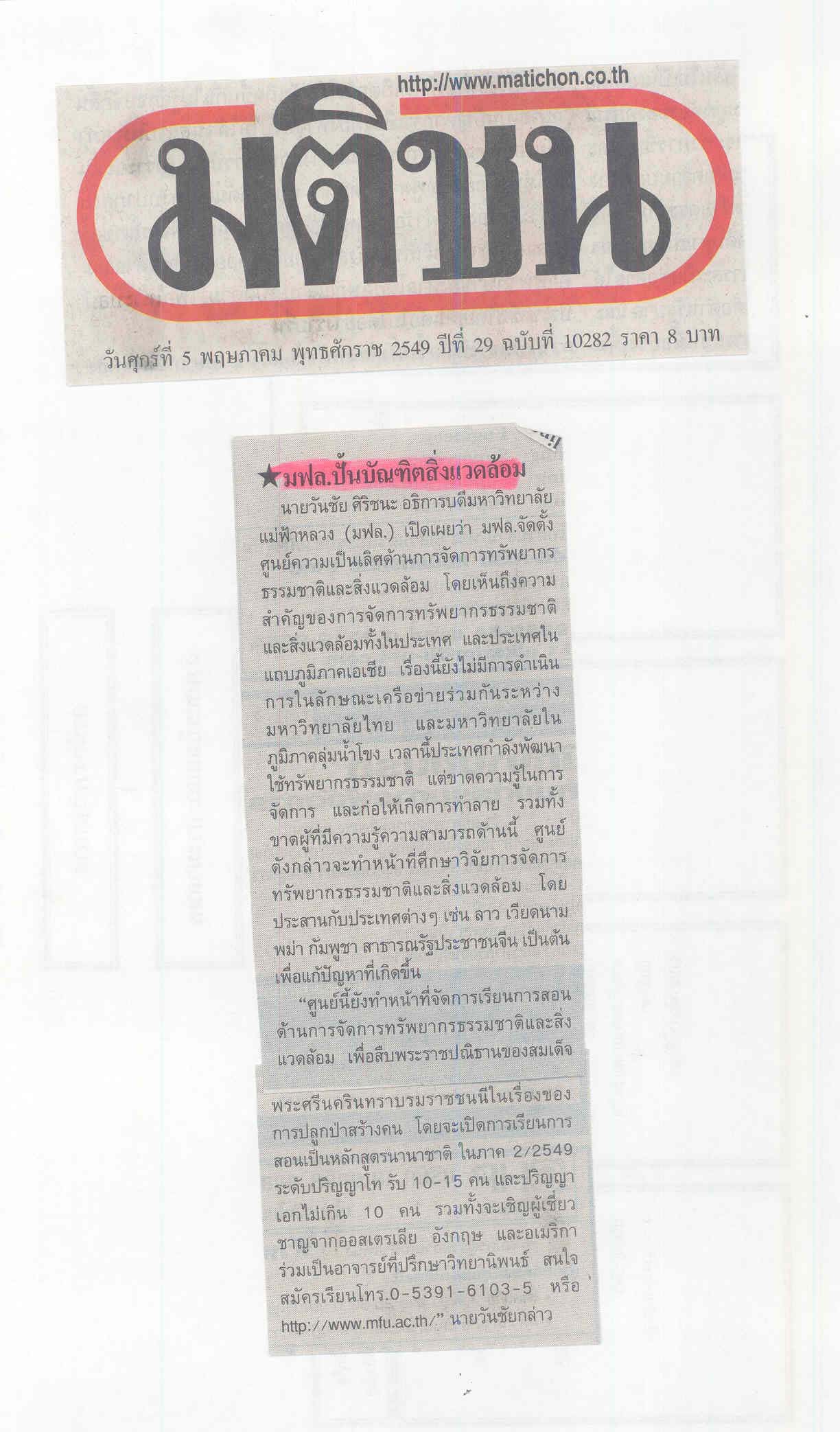 กฤตภาคข่าวมหาวิทยาลัยแม่ฟ้าหลวง ส่วนกลาง พ.ศ. 2549 กล่อง 5