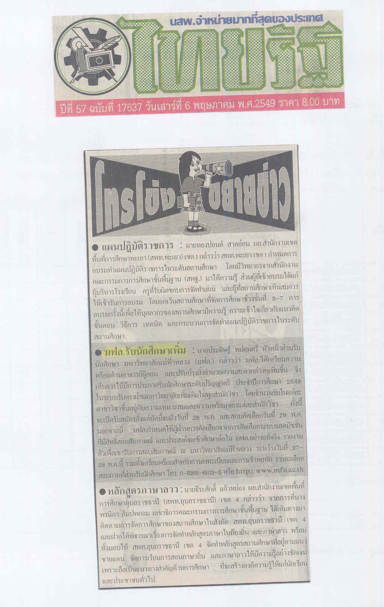 กฤตภาคข่าวมหาวิทยาลัยแม่ฟ้าหลวง ส่วนกลาง พ.ศ. 2549 กล่อง 5