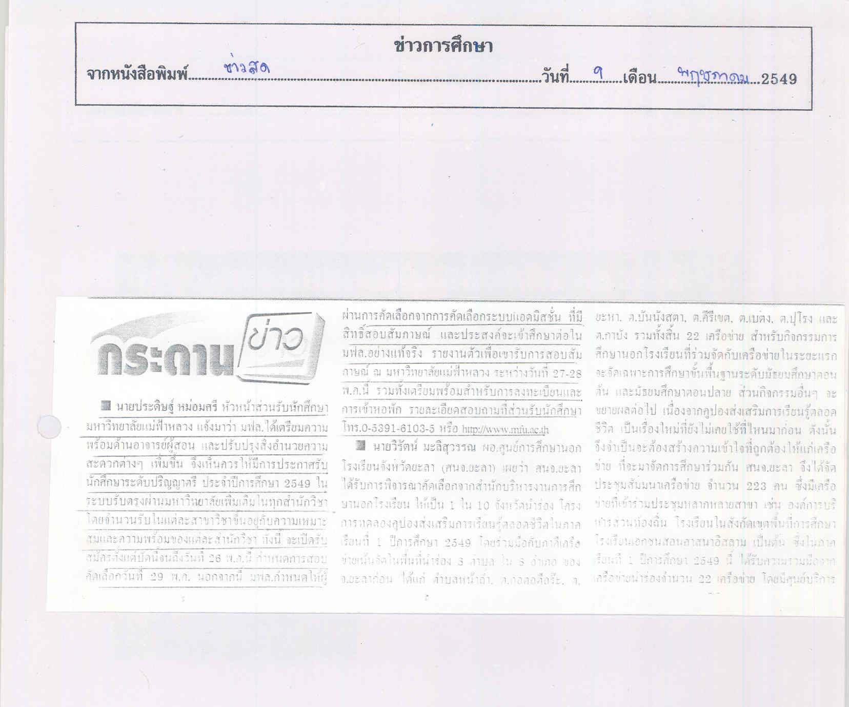 กฤตภาคข่าวมหาวิทยาลัยแม่ฟ้าหลวง ส่วนกลาง พ.ศ. 2549 กล่อง 5