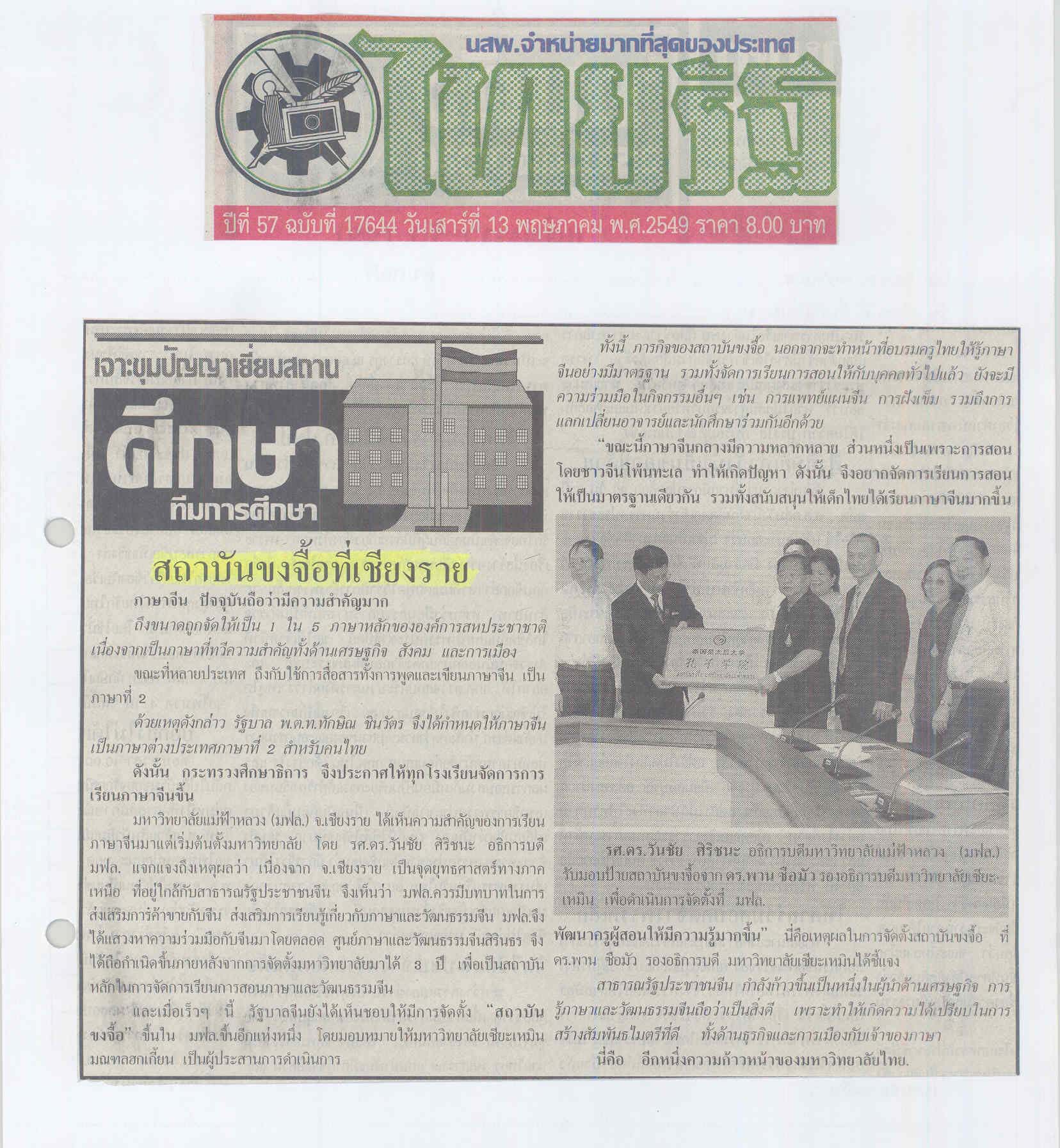 กฤตภาคข่าวมหาวิทยาลัยแม่ฟ้าหลวง ส่วนกลาง พ.ศ. 2549 กล่อง 5