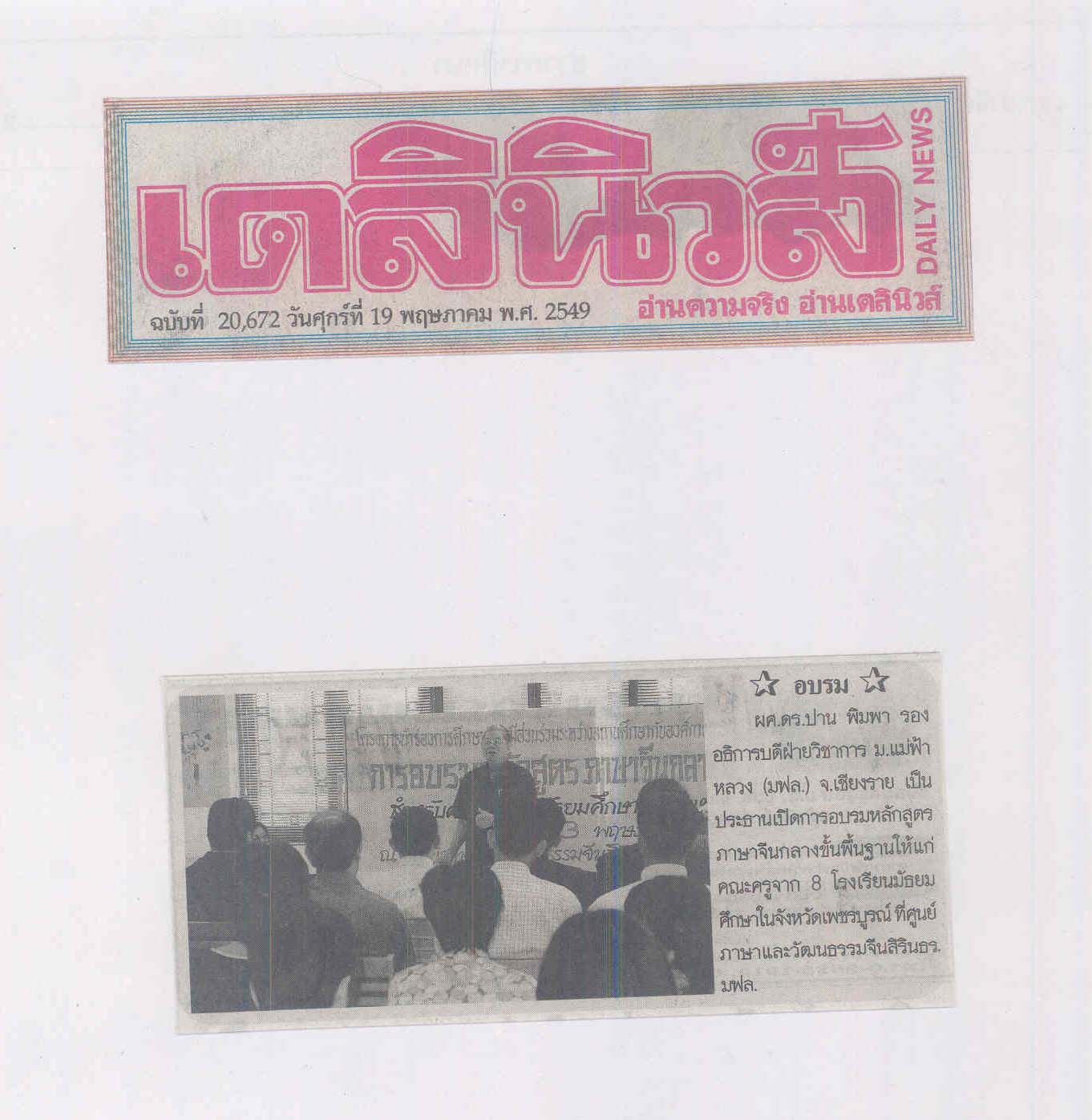 เดลินิวส์, วันที่ 19 พฤษภาคม 2549
