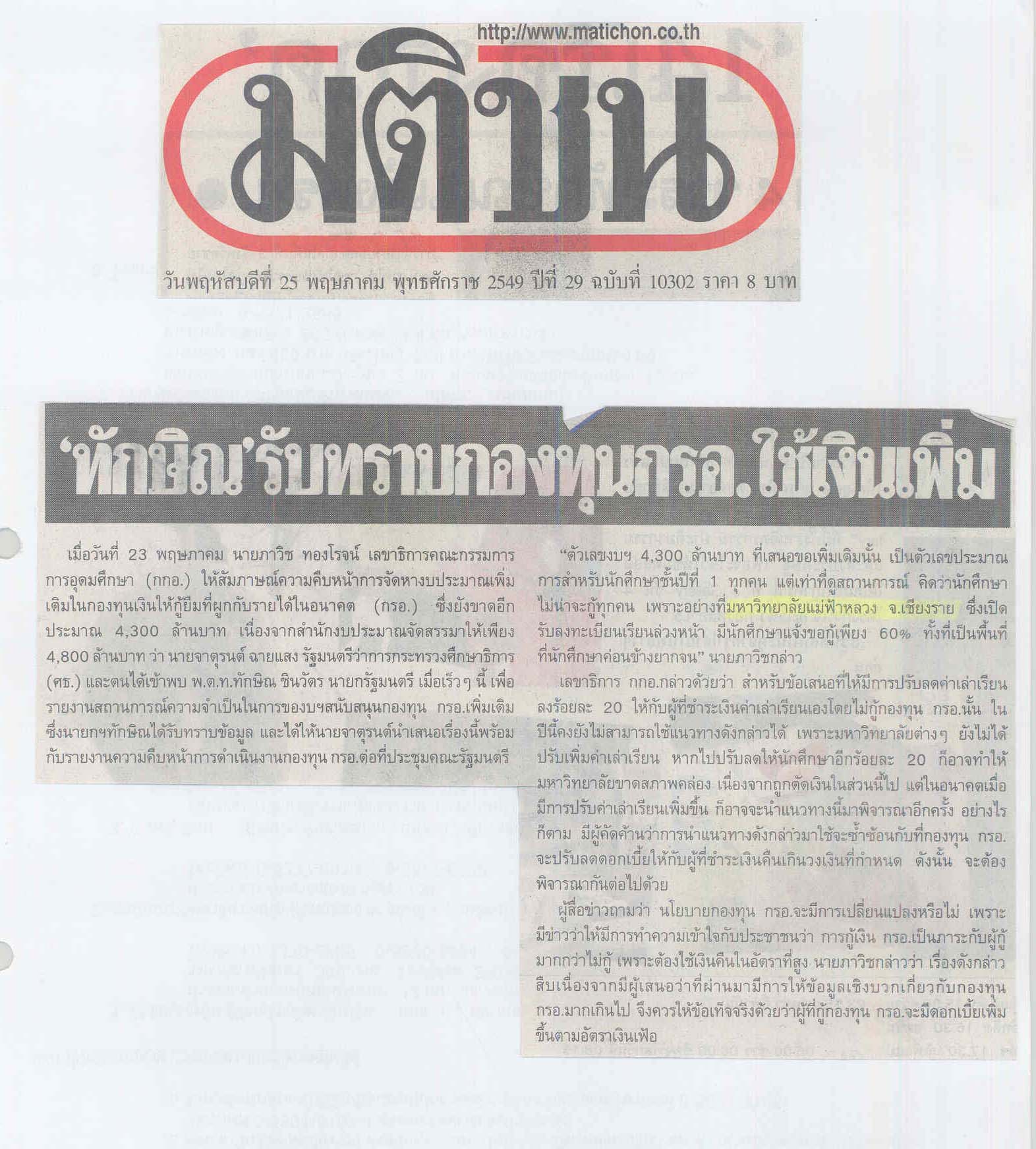 มติชน, วันที่ 25 พฤษภาคม 2549