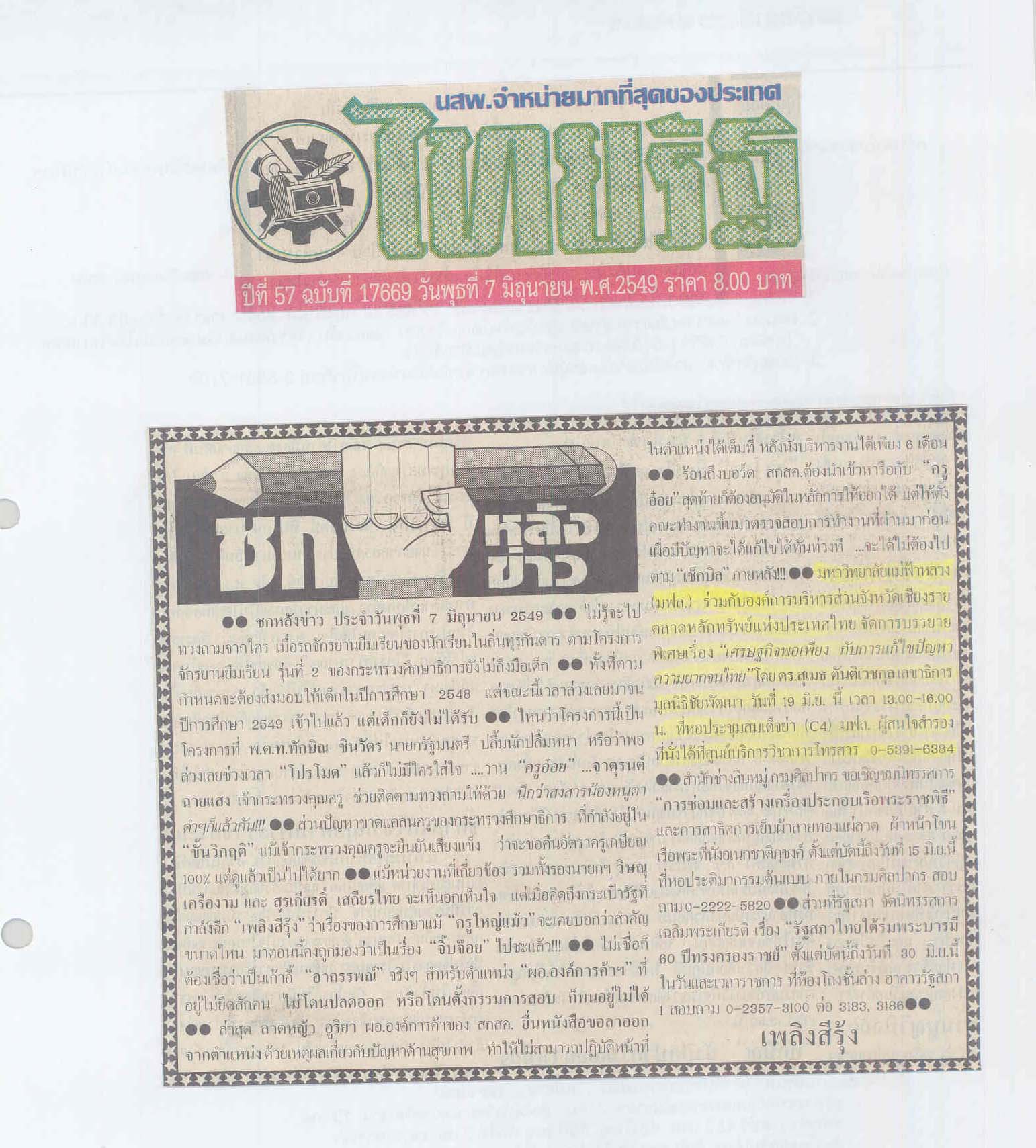 ไทยรัฐ, วันที่ 7 มิถุนายน 2549