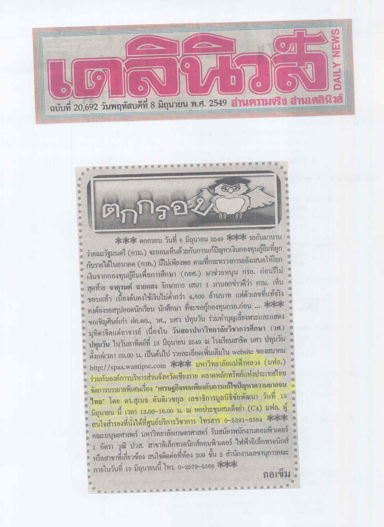 กฤตภาคข่าวมหาวิทยาลัยแม่ฟ้าหลวง ส่วนกลาง พ.ศ. 2549 กล่อง 5