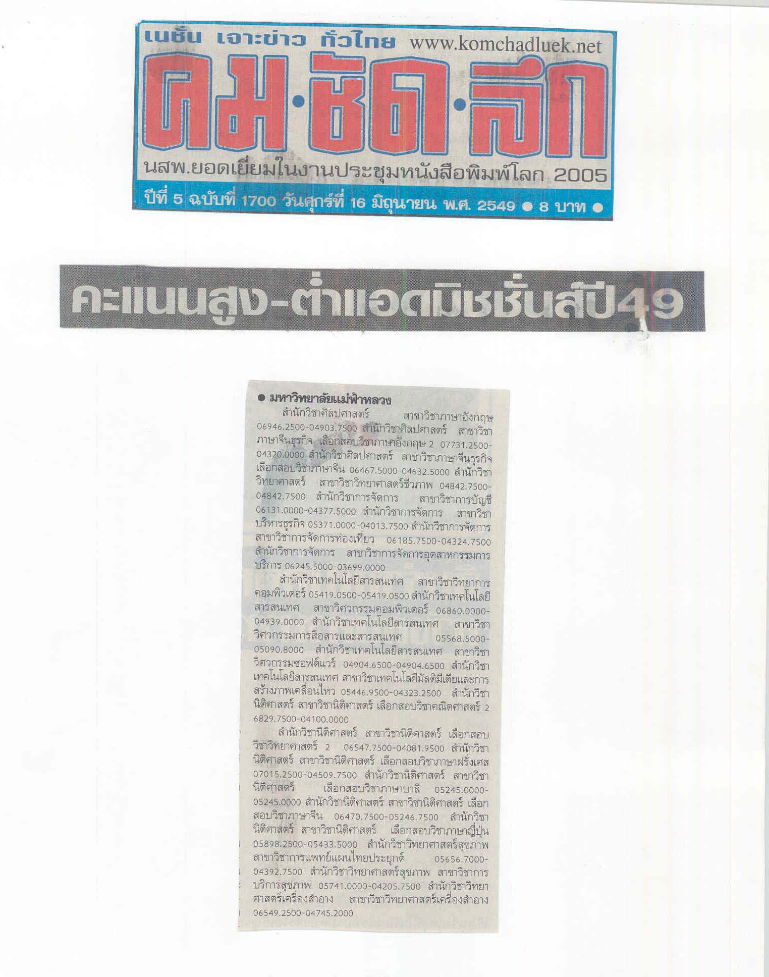 กฤตภาคข่าวมหาวิทยาลัยแม่ฟ้าหลวง ส่วนกลาง พ.ศ. 2549 กล่อง 5