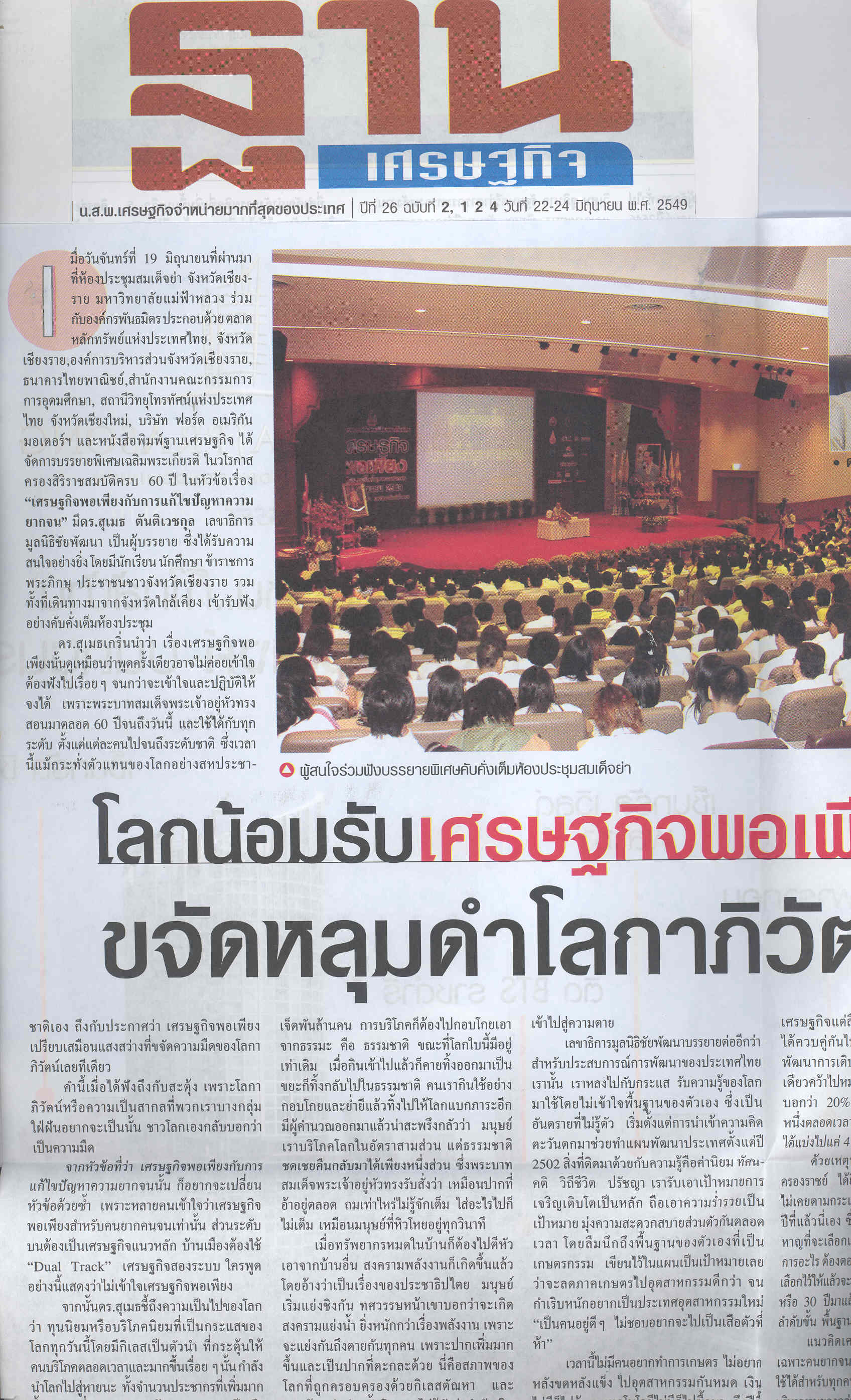 ฐานเศรษฐกิจ, วันที่ 22 - 24 มิถุนายน 2549