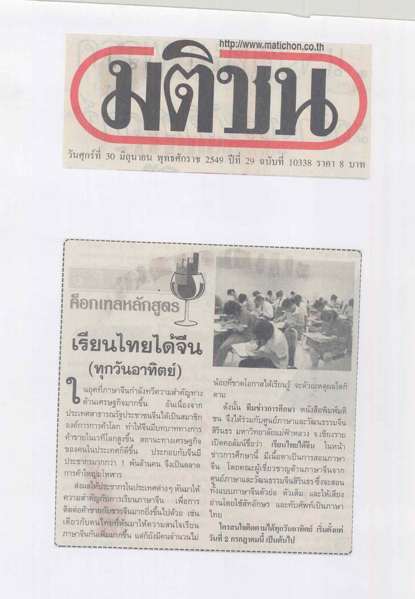 มติชน, วันที่ 30 มิถุนายน 2549