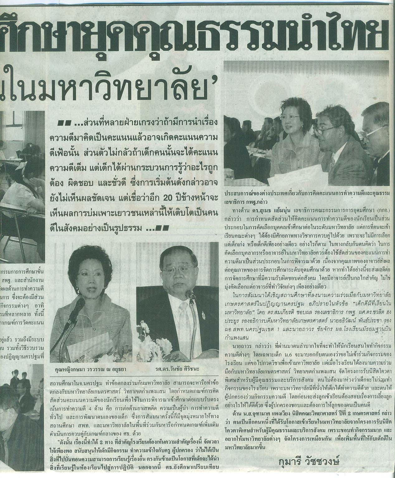 สัมมนาการศึกษายุคคุณธรรมนำไทย เด็กดีที่เรียนในมหาวิทยาลัย