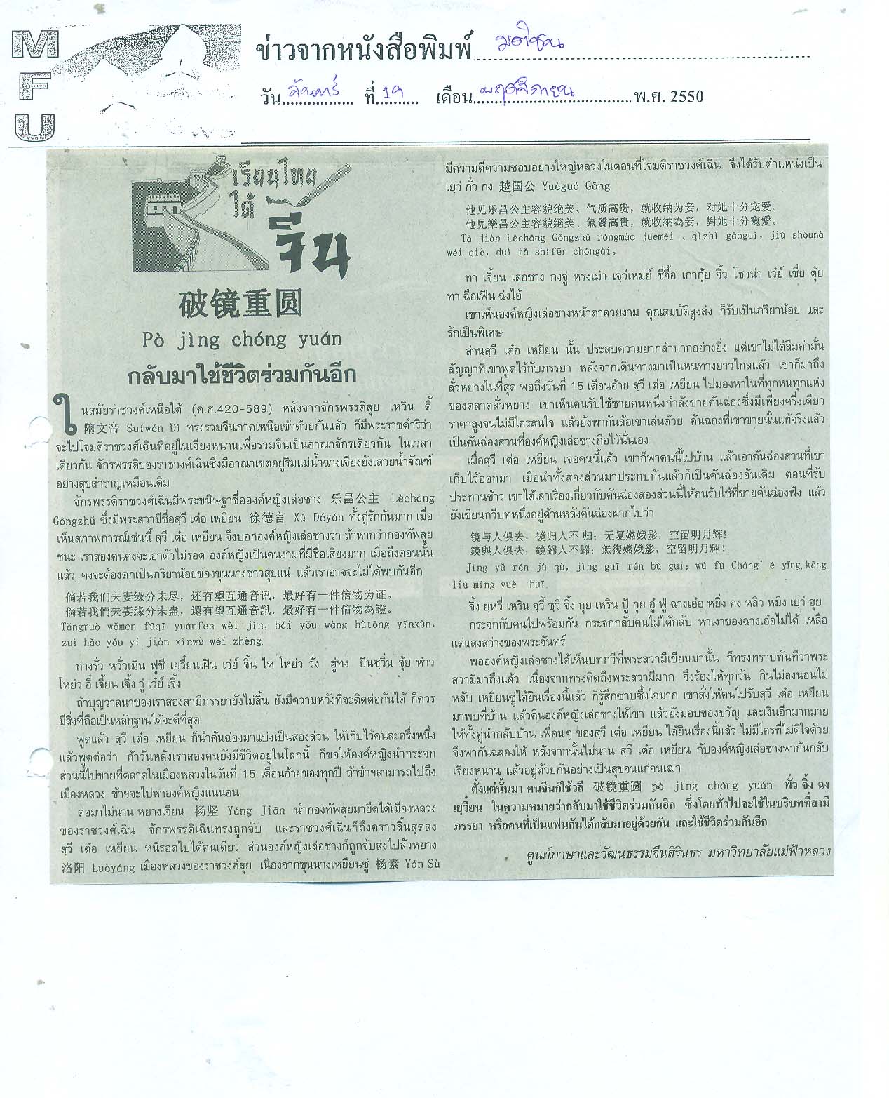 มติชน, วันที่ 19 พฤศจิกายน 2550