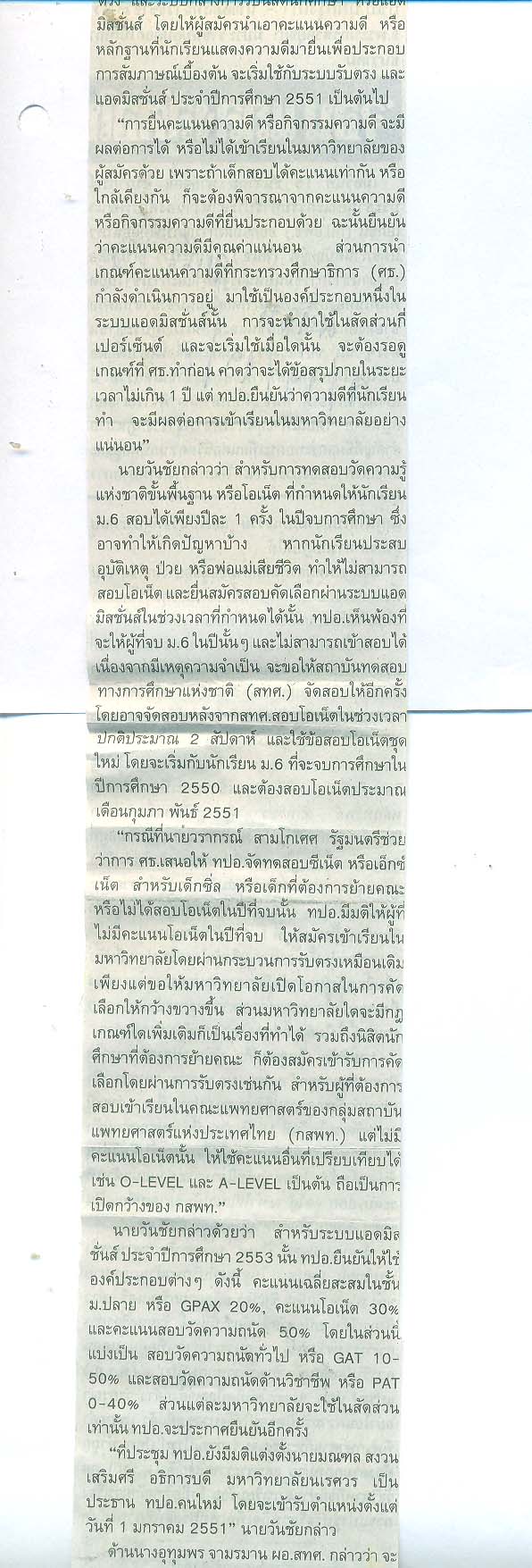 ทปอ.ไฟเขียวใช้คะแนน ความดี ประกอบสัมภาษณ์แอดมิชชั่นส์ 51