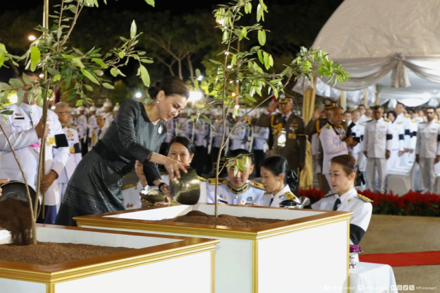 ต่อจากนั้นพระราชทานพระบรมราชวโรกาสให้ศาสตราจารย์พิเศษ ดร.วันชัย ศิริชนะ นายกสภามหาวิทยาลัยแม่ฟ้าหลวง เข้าเฝ้าฯ ทูลเกล้าฯ ถวายเงินโดยเสด็จพระราชกุศล ตามพระราช ผู้ช่วยศาสตราจารย์ ดร.มัชฌิมา นราดิศร อธิการบดีมหาวิทยาลัยแม่ฟ้าหลวง กราบบังคมทูลเบิกผู้มีอุปการคุณต่อมหาวิทยาลัยแม่ฟ้าหลวง เข้าเฝ้าฯ รับพระราชทานของที่ระลึกตามลำดับ (จำนวน 18 ราย) เสร็จแล้วเสด็จฯ ไปทรงกราบที่หน้าเครื่องนมัสการ ทรงลาพระสงฆ์ แล้วเสด็จฯ ออกจากพลับพลาพิธี ไปยังบริเวณที่ปลูกต้นไม้พระบาทสมเด็จพระเจ้าอยู่หัว และสมเด็จพระนางเจ้า ฯ พระบรมราชินี ทรงปลูกต้นรวงผึ้ง ณ บริเวณหน้าอาคารโรงพยาบาลศูนย์การแพทย์ฯ ต่อจากนั้นเสด็จฯ ไปยังอาคารโรงพยาบาลศูนย์การแพทย์มหาวิทยาลัยแม่ฟ้าหลวง เสด็จเข้าห้องประทับรับรอง ณ ชั้น 2 ทรงลงพระปรมาภิไธย และทรงลงพระนามาภิไธย ในสมุดที่ระลึก ประทับพักพระราชอิริยาบถ สมควรแก่เวลา เสด็จออกจากห้องประทับรับรอง ไปยังบริเวณฉายพระบรมฉายาลักษณ์ พระบาทสมเด็จพระเจ้าอยู่หัว ฉายพระบรมฉายาลักษณ์ ร่วมกับสมเด็จพระนางเจ้า ฯ พระบรมราชินี และกรรมการสภามหาวิทยาลัย ผู้บริหารมหาวิทยาลัย และผู้มีอุปการคุณต่อมหาวิทยาลัยแม่ฟ้าหลวง (จำนวน 3 ชุด)