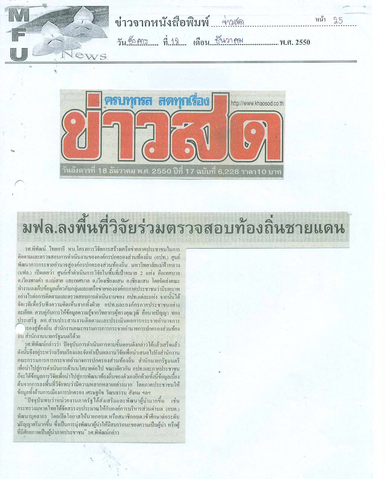 ข่าวสด, วันที่ 18 ธันวาคม 2550 น.25