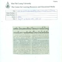 มฟล.จัดแสดงศิลปวัฒนธรรมยิ่งใหญ่ กระชับความสัมพันธ์ไทย - อินโดนีเซีย