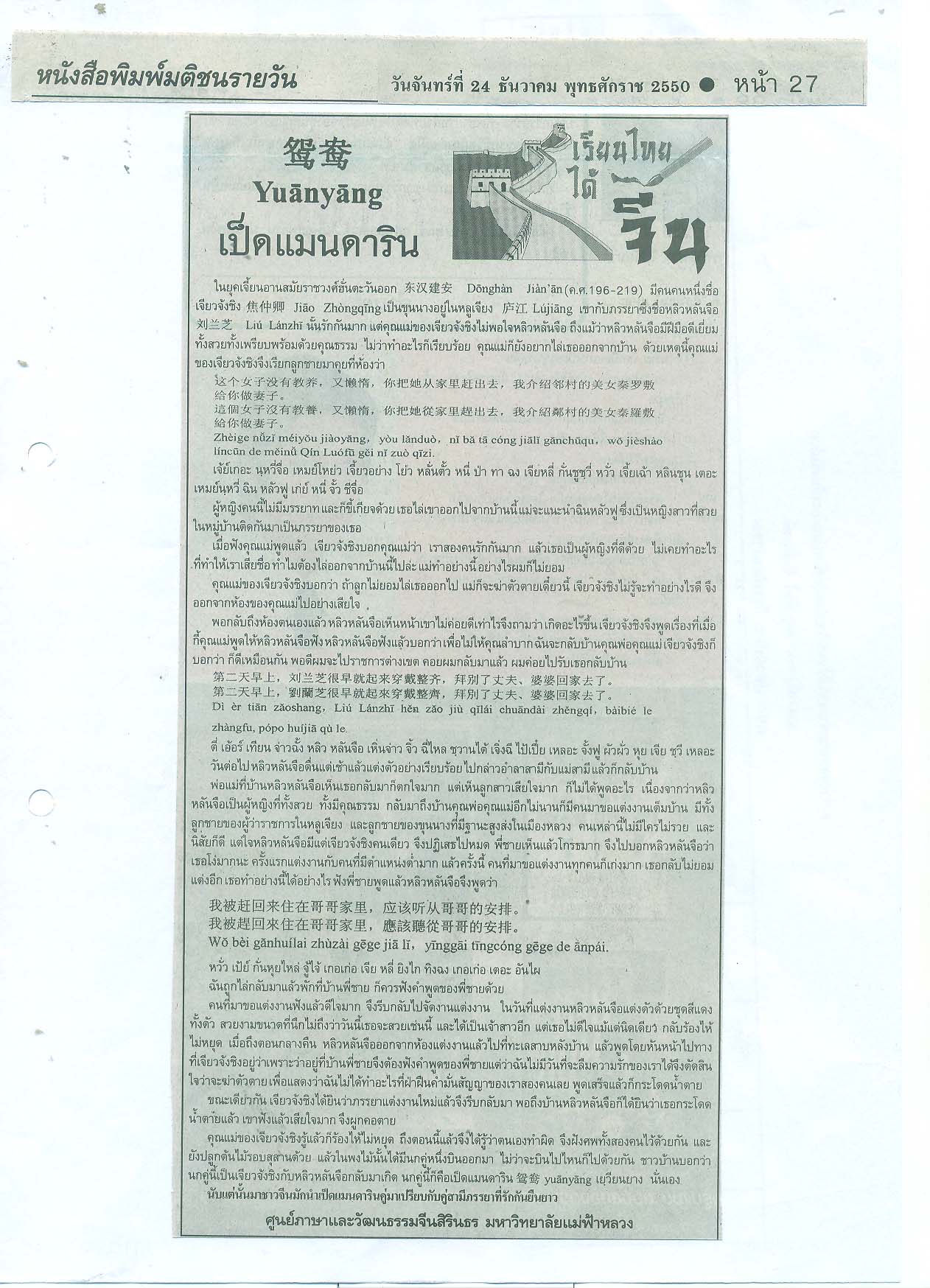 มติชน, วันที่ 24 ธันวาคม 2550 น.27