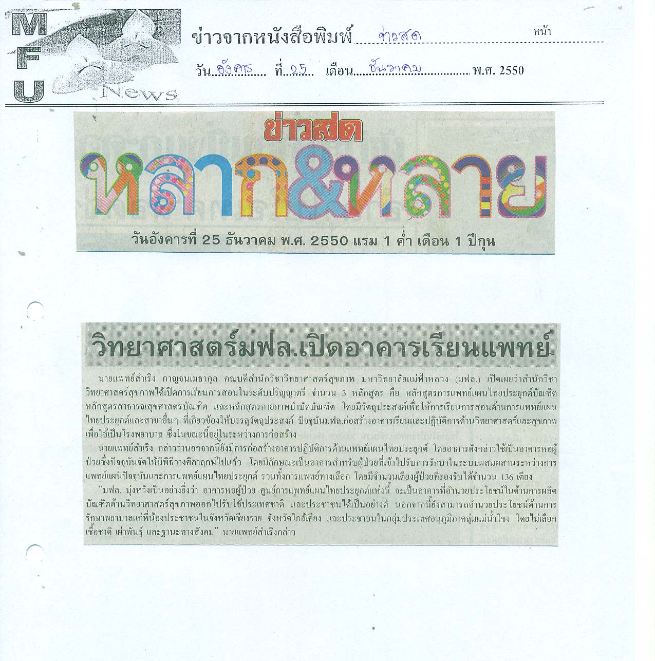 กฤตภาคข่าวมหาวิทยาลัยแม่ฟ้าหลวง ส่วนกลาง พ.ศ. 2550 กล่อง 7