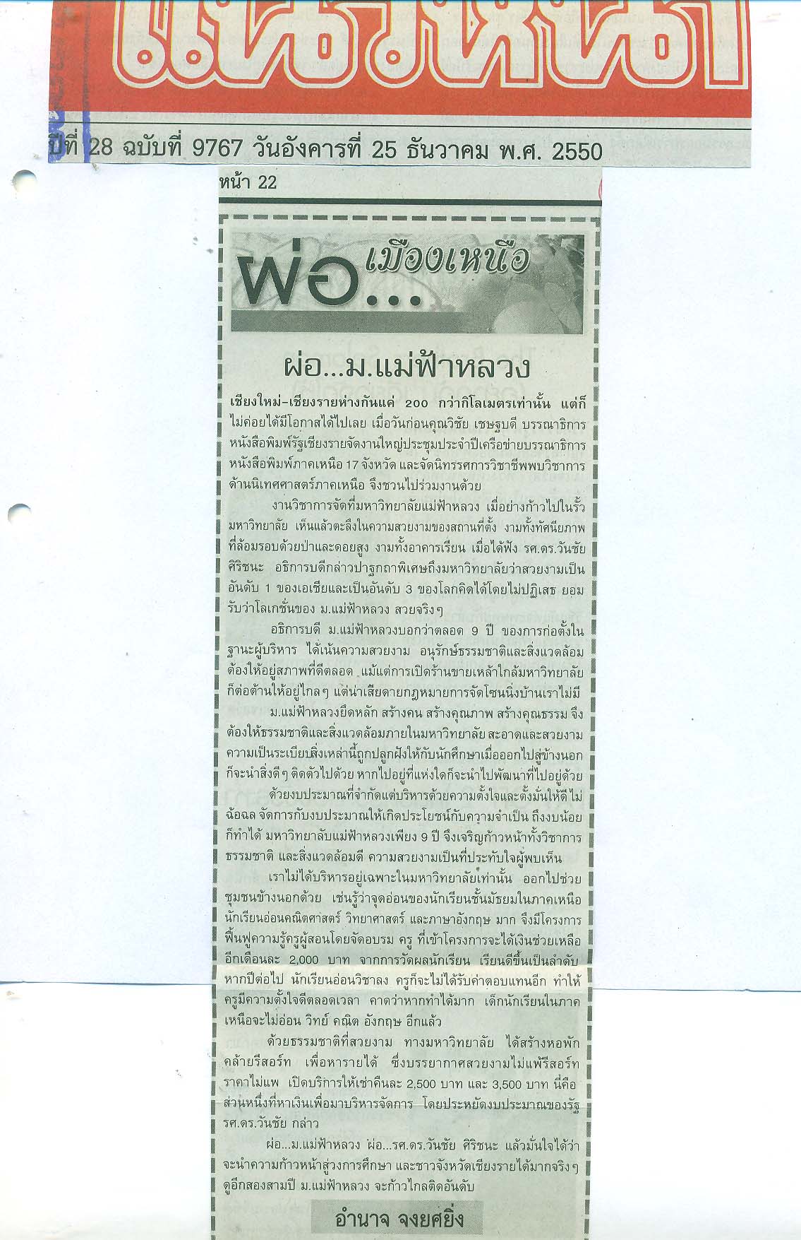 กฤตภาคข่าวมหาวิทยาลัยแม่ฟ้าหลวง ส่วนกลาง พ.ศ. 2550 กล่อง 7