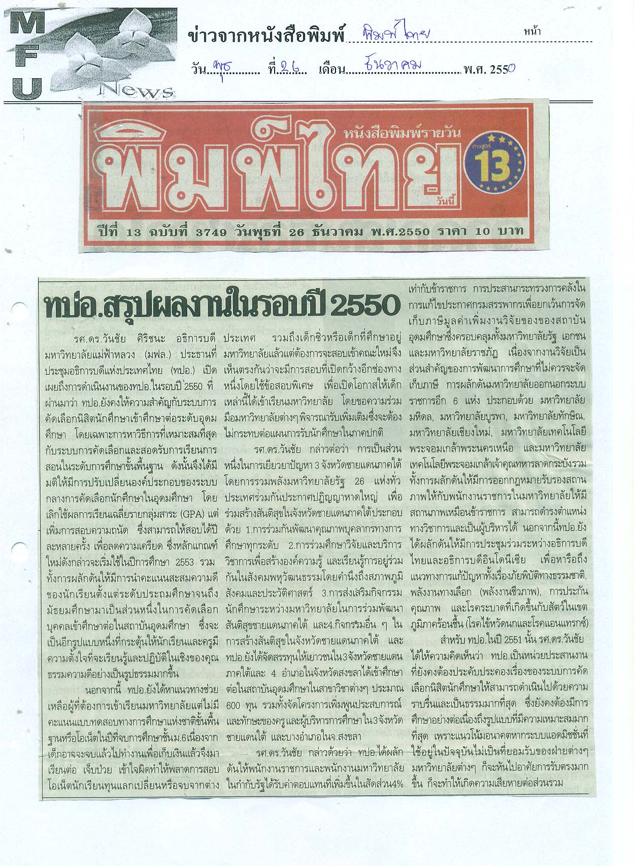 พิมพ์ไทย, วันที่ 26 ธันวาคม 2550