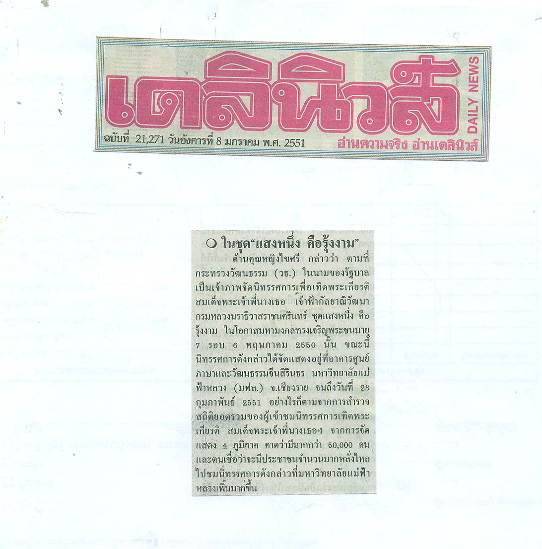 เดลินิวส์, วันที่ 8 มกราคม 2551 น.13