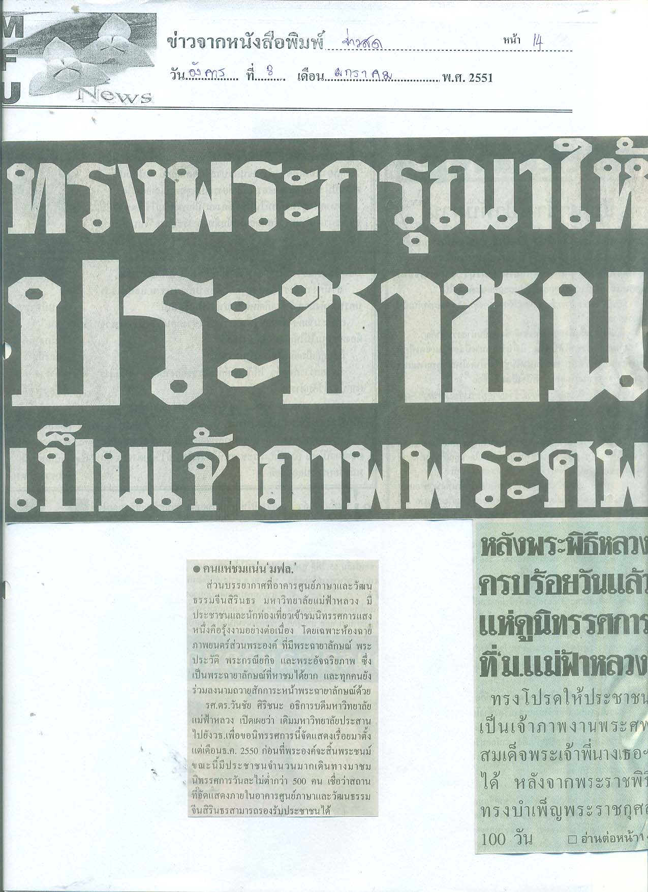 กฤตภาคข่าวมหาวิทยาลัยแม่ฟ้าหลวง ส่วนกลาง พ.ศ. 2551 กล่อง 9