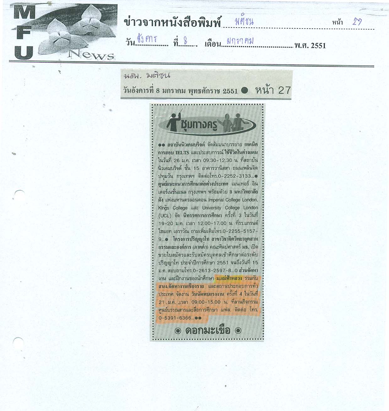 กฤตภาคข่าวมหาวิทยาลัยแม่ฟ้าหลวง ส่วนกลาง พ.ศ. 2551 กล่อง 9