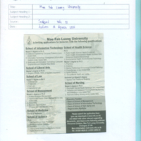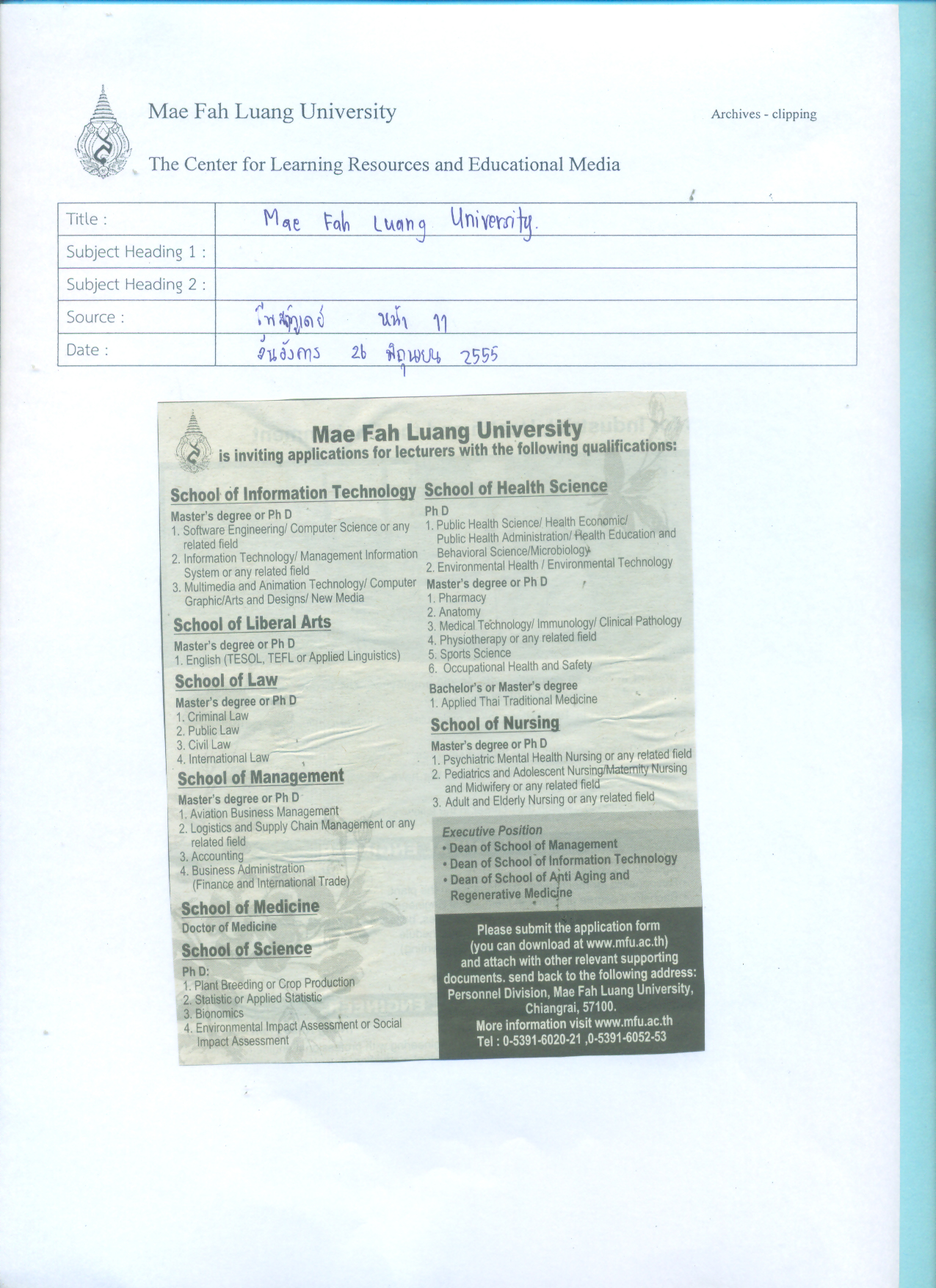 กฤตภาคข่าวมหาวิทยาลัยแม่ฟ้าหลวง ส่วนกลาง พ.ศ. 2555 กล่อง 15