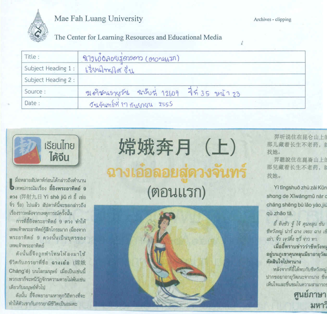 กฤตภาคข่าวมหาวิทยาลัยแม่ฟ้าหลวง ส่วนกลาง พ.ศ. 2555 กล่อง 15