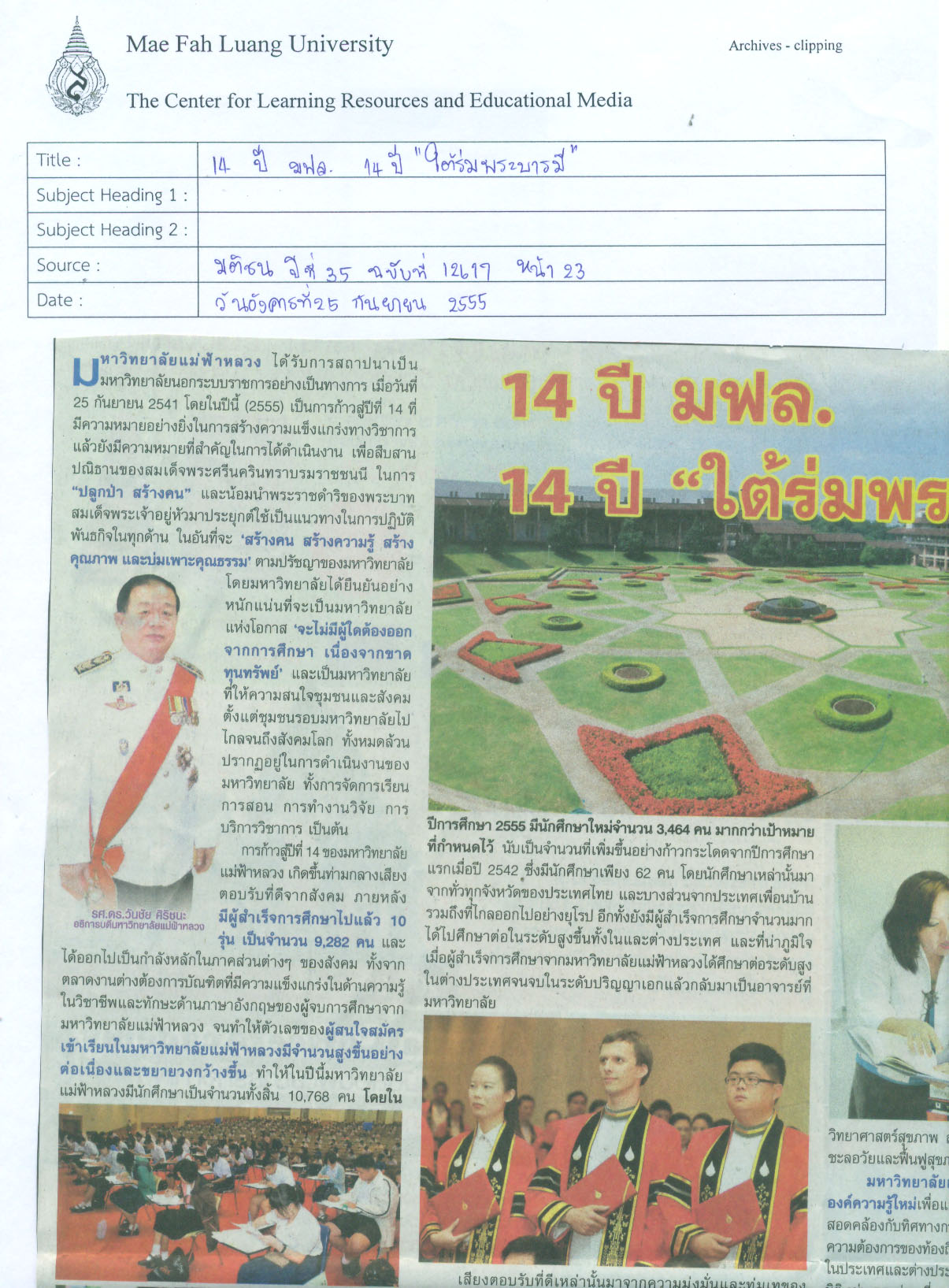 กฤตภาคข่าวมหาวิทยาลัยแม่ฟ้าหลวง ส่วนกลาง พ.ศ. 2555 กล่อง 15